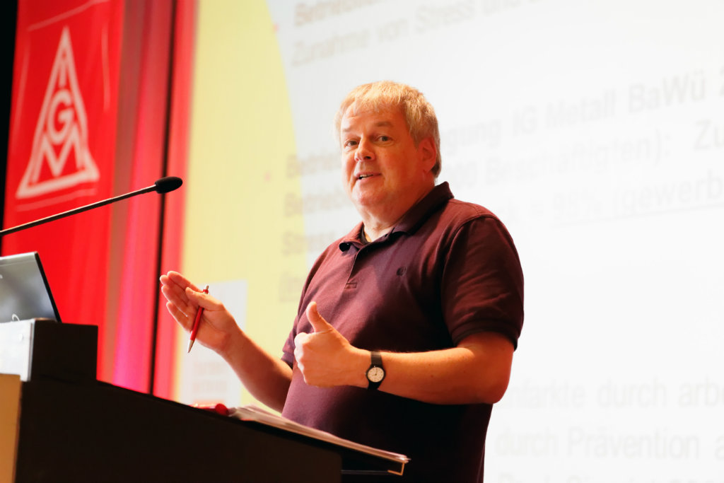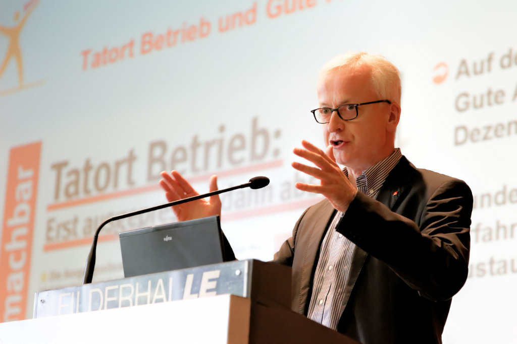 Die IG Metall Baden-Württemberg ist seit 25 Jahren mit der Aktion "Tatort Betrieb" im Arbeits- und Gesundheitsschutz aktiv, auf einer gleichnamigen Konferenz mit 300 Teilnehmern kündigte Roman Zitzelsberger, Bezirksleiter im Südwesten, heute eine Fortsetzung an: "Solange Missstände am Arbeitsplatz zu den Hauptursachen für Erkrankungen und Frühverrentungen gehören, wird die IG Metall in dieser Frage keine Ruhe geben."
